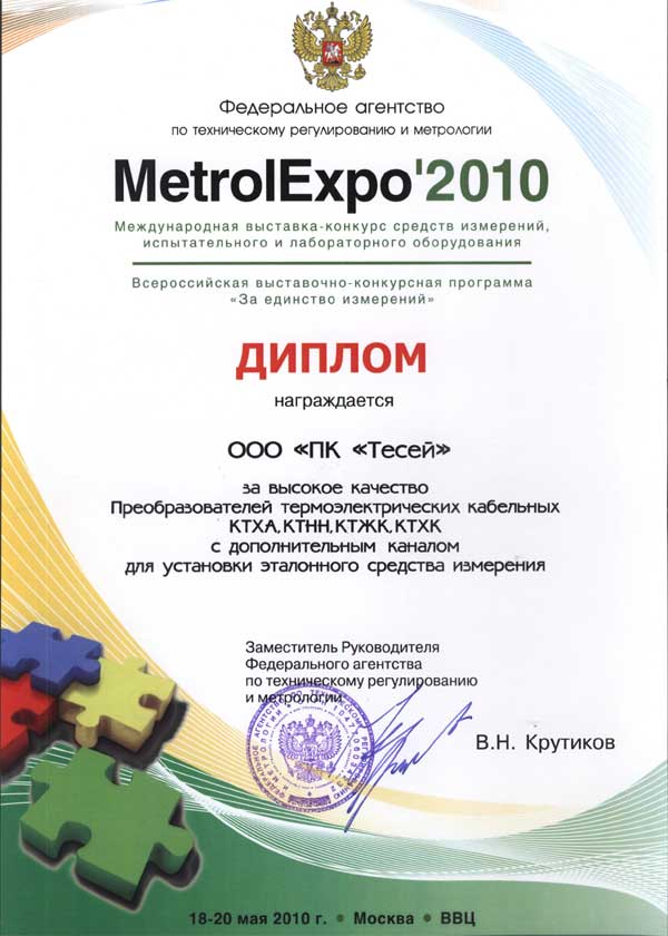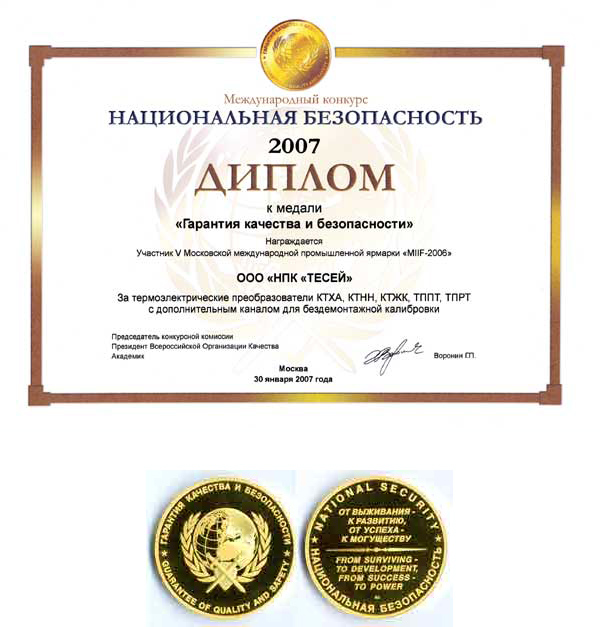 Победитель Всероссийского конкурса "100 лучших товаров России - 2004". На конкурс в номинации "Продукция производственно-технического назначения" были представлены кабельные термоэлектрические преобразователи типов КТХА и КТХК.
