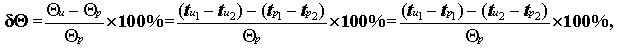 Значения относительной погрешности комплекта термометров при измерении разности температур находились как: